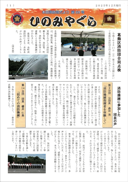 本田消防団第四分団は立石地区と青戸地区の一部を担当しており、火災での出動は勿論のこと、防災パトロール、葛飾区内のイベントや各町会のイベントにも参加協力しています。
