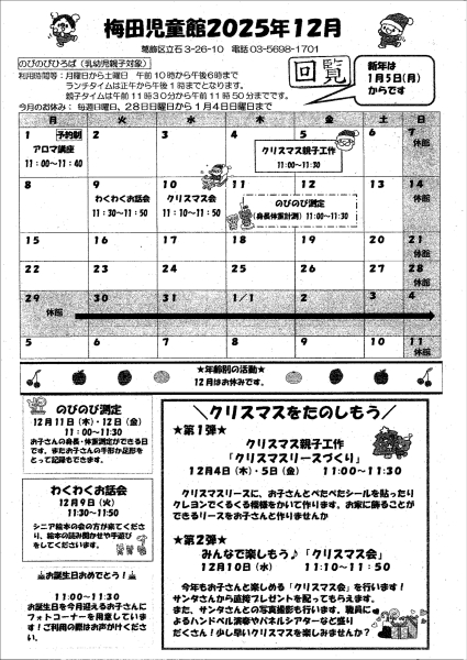 「梅田児童館12月のご案内」