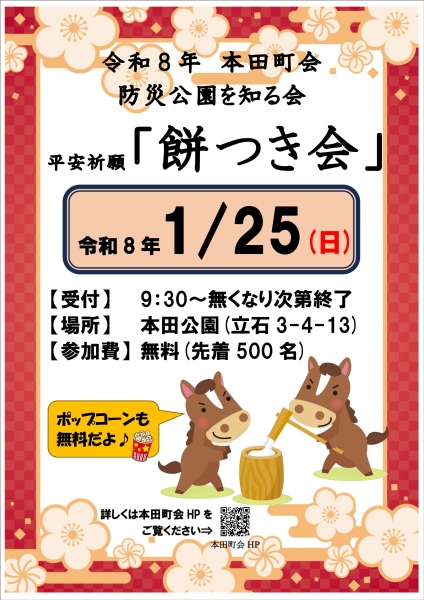 来年も本田町会員の皆さまに楽しんでいただけるような「餅つき会」が開催できることを願い、また、本田町会員の皆さまが健やかにお過ごしできるよう祈念してご挨拶とさせていただきます。