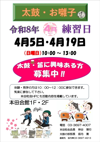 ※「本田太鼓囃子 会員募集!」の記事でもご案内していますが、問い合わせからも受け付けています。
