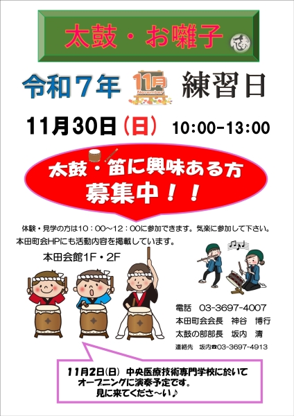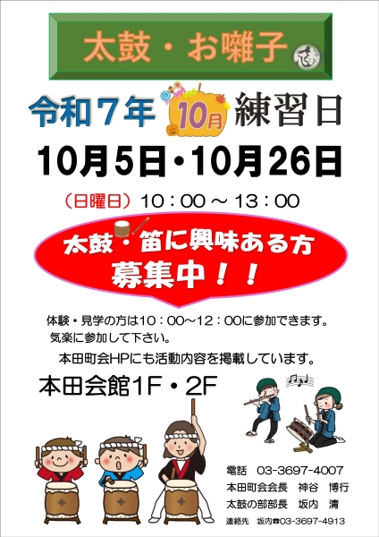 本田町会では太鼓部員を募集しています